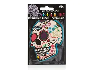 Great to freshen up your car, this Sugar Skull Rose Fragrance Air Freshener, is cute and perfect to place on your rear mirror. Perfect to show interest in culture and Latin America theme. The freshener is approximately 4" in length. It comes packaged in a hanging panel and poly bag.