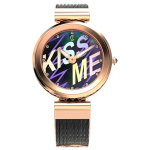 Charriol FE32302016 Women's 'Forever' Black Graffiti Dial Rose Tone Swiss Quartz Watch Charriol FE32.302.016 Women's 'Forever' Black Graffiti Dial Rose Tone Swiss Quartz Watch features a stainless steel 32mm case, a black dial, and a sapphire crystal. The 16mm stainless steel band is fitted with a deployment clasp. This wrist watch is powered by Swiss Quartz movement. This watch has a water resistance of up to 100 feet/30 meters, suitable for short periods of recreational swimming. Features: Brand: Charriol Model number: FE32302016 Case Shape: Round Dial window material type: Sapphire Display Type: Analog Clasp: Deployment Clasp Case Material: Stainless steel Case diameter: 32 millimeters Band Material: Stainless Steel Band length: 8 inches Band width: 16 millimeters Band Color: Black with Rose-tone A ccents Dial Color: Black Bezel Material: Stainless Steel Bezel Function: Fixed Movement: Swiss Quartz Water-resistant depth: 30 meters UPC: Charriol FE32302016 MSRP: $ 1,040