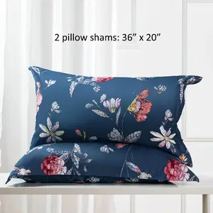 Inland 90224 FLORAL DUVET COVER SET FLOWER BLUE KING