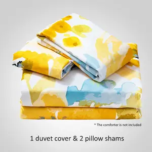 Inland 90205 FLORAL DUVET COVER SET YELLOW FLOWER QUEEN