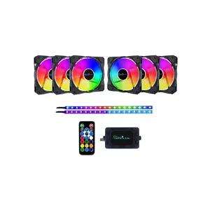 Enhance your PC's cooling and aesthetics with the APEVIA Frostblade RGB fan set. This package includes a 120mm silent fan with addressable RGB lighting, allowing for stunning color effects, and two magnetic LED strips for additional customization.