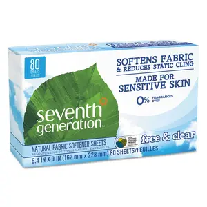 Seventh Generation 10732913449306 Free & Clear Fabric Softener Sheets - Sheet - 6.40 Width x 9 Length - 80 / Box - White