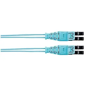The Panduit Opti-Core OM4 Fiber Patch Cable is designed for high-speed data transmission, featuring LC multi-mode connectors on both ends. This 5-meter patch cable is made from 50/125 micron fiber optic material, making it perfect for OM4 compliant installations. Its riser-rated construction ensures safety in vertical spaces, while the striking aqua color aids in easy identification.