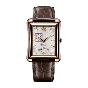 Piaget G0A33070 Black Tie Emperador Silver Dial Brown Leather Men's Watch The 18kt rose gold case with a brown alligator leather strap. Fixed 18kt rose gold bezel. Silvered guilloche dial with rose gold-tone hands and index hour markers. Dial Type: Analog. Two sub-dials displaying: small second and power reserve indicator. Piaget Calibre 551P Automatic movement, based upon Piaget 500P, containing 27 Jewels, composed of 225 parts, bitting at 21600 vph, and has a power reserve of approximately 42 hours. Scratch resistant sapphire crystal. Pull / push crown. Solid case back. Tonneau case shape, case size: 41 mm x 32 mm, case thickness: 9.2 mm. Tang clasp. Water resistant at 30 meters / 100 feet. Functions: hour, minute, small second, power reserve indicator. Emperador Series. Luxury watch style. Watch label: Swiss Made. Item Variations: GOA33070 , A33070 , 33070. Piaget Black Tie Emperador Silver Dial Brown Leather Men's Watch G0A33070. Features: Brand: Piaget Series: Emperador Gender: Men's Model: G0A33070 Watch Label: Swiss Made Movement: Automatic Case Size: 41 mm x 32 mm Case Shape: Tonneau Band Material: Alligator Leather Band Type: Strap Band Color: Brown Dial Color: Silvered Guilloche Type: Analog Crystal: Scratch Resistant Sapphire Hands: Rose Gold-tone Dial Markers: Index Second Markers: Minute Markers around the outer rim Bezel: Fixed Bezel Material: 18kt Rose Gold Water Resistance: 30 meters / 100 feet