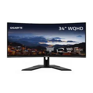 Experience immersive gaming with the Gigabyte G34WQCP, a stunning 34-inch ultrawide monitor featuring a crisp 3440x1440 resolution. With a rapid 1ms response time and a smooth 180Hz refresh rate, this monitor ensures fluid visuals and minimal ghosting during fast-paced action.