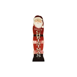 Celebrate the holiday spirit with this charming hand-painted wooden Santa that wishes everyone a Merry Christmas.