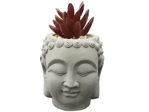 Bulk Buys GA099 Buddha Head Planter with Faux Succulents and Rocks