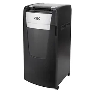 Spend less time shredding and more time on other tasks with the GBC AutoFeed+ 750M Micro-Cut Shredder. Our innovative auto-feeding technology takes the manual work out of shredding. Simply stack, shut and walk away. The shredder will shred your papers while you focus on your next project. Stack up to 750 sheets in the feeder for hands-free automatic shredding, or shred up to 15 sheets at once using the manual feeder slot. This shredder uses a micro-cut style shred, which provides P-5 Level Security. It safely shreds confidential or sensitive information, giving you peace of mind. A great choice for large offices and businesses. The machine is ultra-quiet to minimize noisy distractions. The powerful induction motor with 240 minute continuous run time and oversized 37 gallon bin let you shred longer without stopping. A lockable bin provides additional security to protect your documents. Auto forward and reverse functions help prevent jams. Shred documents, paper clips and staples in the auto feeder. Credit cards must be manually inserted.