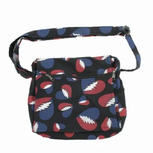 Jayli Imports GDB119GDbag:GDB119-blk Grateful Dead Cotton Shoulder Bag with Heart Bolt Design