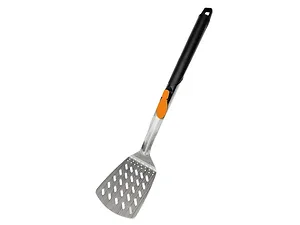 Crafted from durable 430 stainless steel, this spatula is built to withstand the rigors of grilling. It also makes an excellent gift for the BBQ enthusiast in your life! Each spatula is securely packaged on a hanging card for easy display. Overall length is approximately 21 inches.