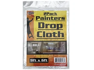 Protect your space while painting or renovating with this set of 2 heavy-duty drop cloths. Measuring 9'x6' each, these versatile cloths can be laid on the floor, hung on walls, or draped over furniture and appliances. Perfect for home improvement projects, they help safeguard your furniture, carpets, and surfaces from paint spills and debris.
