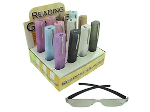 Available in a range of powers from +1.25 to +3.00, these glasses offer versatility for various needs. Choose from an assortment of case colors including white, purple, brown, pink, black, and blue, with matching glass arm colors for a coordinated look. Each display includes 12 pairs of glasses, complete with their own case.