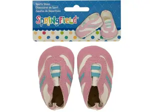 Dress your doll in style with these vibrant sports shoes! These stylish footwear options come in pink, blue, and white faux suede, designed specifically for 18" dolls. The elastic laces and treaded bottoms ensure a snug fit and comfortable wear, making them perfect for playtime adventures.