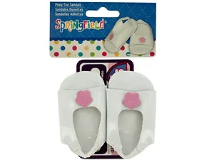 These delightful Peep Toe Sandals are perfect for accessorizing your favorite 18" dolls. With their shiny white finish and adorable pink flower embellishments, they are an ideal match for dresses and skirts.