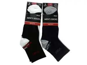 Stay comfortable and stylish with our Men's Assorted Sport Ankle Socks, designed for active individuals who value both performance and flair. These socks are perfect for any workout, whether you're hitting the gym or going for a run. Each pack includes three pairs of socks in various colors and designs, featuring the USA printed on the cuff. They're the ideal addition to your gym bag or locker, ensuring you always have a fresh pair on hand.
