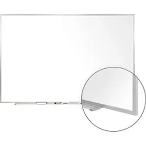 Offering a superior writing surface and unsurpassed durability, M1 Dry Erase Board with a 28-gauge porcelain-on-steel surface is mounted to a 3/8" thick backing for added strength. Durable, porcelain-enameled surface keeps the dry-erase board from scratching or denting, even when installed in high-traffic schools and offices. Wear-resistant surface does not absorb ink, eliminating staining and ghosting that would otherwise result from repeated use. Easy-to-wipe board requires less cleaning, achieving a long-lasting bright white surface without the hassle. Board comes in sleek, satin aluminum frame with an accessory tray and protective end caps. SmartPak tray minimizes clutter and keeps items within reach.