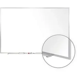 Markerboard features heavy 28-gauge porcelain steel surface, the hardest markerboard surface available, on a 3/8" backing for years of dependable service. Surface resists scratching, denting, staining and will accept magnetic accessories. Full-width marker tray is detachable to lower damage potential. Includes "L" bracket hangers for easy mounting. Writing surface is aluminum framed.