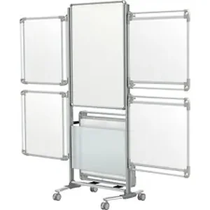 The Nexus Dry Erase Board Easel is a mobile, double-sided whiteboard display stand that provides a flexible writing area plus expandable work space for tablets. The double-sided, porcelain surface is a Green solution. Workspace is expandable with side pegs that accommodate up to eight Tablets (included) to give users the most space possible to create and collaborate. Angled foot design allows units to be grouped together for more coordinated collaboration space. Magnetic accessory bin includes four markers and one eraser.