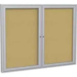 - 2 Door Enclosed Natural Cork Bulletin Board with Satin Frame