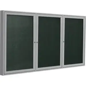 Traditional 3-Door Enclosed Bulletin Board is weather-resistant for outdoor use when mounted under an awning or overhang. It features a durable, anodized satin aluminum frame, vinyl tackable panels and weather-resistant backing. Door features full-length hinges and shatter-resistant acrylic panels with flush mount locks and keys for added security. Self-healing, vinyl surface holds up under the most demanding use, providing years of reliable service. Concealed corner brackets create easy, secure mounting.