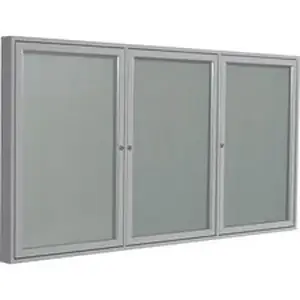 Traditional 3-Door Enclosed Bulletin Board is weather-resistant for outdoor use when mounted under an awning or overhang. It features a durable, anodized satin aluminum frame, vinyl tackable panels and weather-resistant backing. Door features full-length hinges and shatter-resistant acrylic panels with flush mount locks and keys for added security. Self-healing, vinyl surface holds up under the most demanding use, providing years of reliable service. Concealed corner brackets create easy, secure mounting.