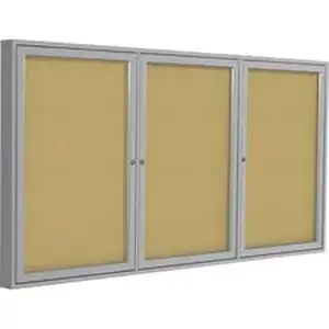 - 3 Door Enclosed Natural Cork Bulletin Board with Satin Frame