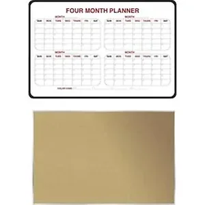 Designed for everyday use, Dry Erase/Bulletin Board Kit features high-quality communication tools that will fit perfect in a home office. Set includes one 36"x 24" four-month planner and one 36"x 24" cork bulletin board. Self-healing cork can withstand repeated tacking. Use in your home office to make notes and write ideas or for children to encourage communication.