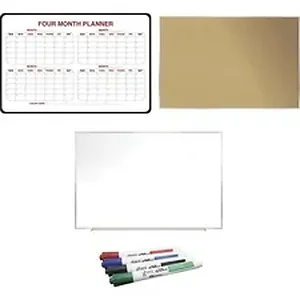 Designed for everyday use, Dry Erase/Bulletin Board Kit features high-quality communication tools that will fit perfect in a home office. Set includes one Set includes one 36"x 24" four-month planner and one 36"x 24" magnetic dry erase board and one 36"x 24" cork bulletin board. Self-healing cork can withstand repeated tacking. Use in your home office to make notes and write ideas or for children to encourage communication.