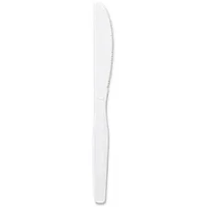 Heavyweight knives are rigid and flexible. Disposable design is perfect for breakrooms or events. Knives are made of white polystyrene.