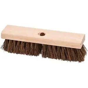 Deck/Floor Brush with threaded handle hole features 2" palmyra bristles ideal for ruggedly scrubbing rough surfaces. Sturdy, natural fibers easily tackle tough cleaning jobs. Hole in the center of the 10" wide, smooth hardwood block easily accepts handles with standard threading no matter the length.