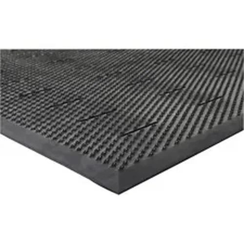 Anti-fatigue mat offers a 1/2" overall thickness with superior anti-fatigue properties to increase comfort and productivity. Drainage slots allow liquids to flow through the mat, keeping moisture away from feet. Raised cleats on top surface provide the mat with premium traction. Beveled edges help prevent slips, trips, and falls. Cross members on back reduce mat movement in wet or dry environments. Mat is made from 100 percent rubber for long-lasting maximum durability. Mat is easy to clean. Simply wipe with a damp cloth, sweep, vacuum or hose off.