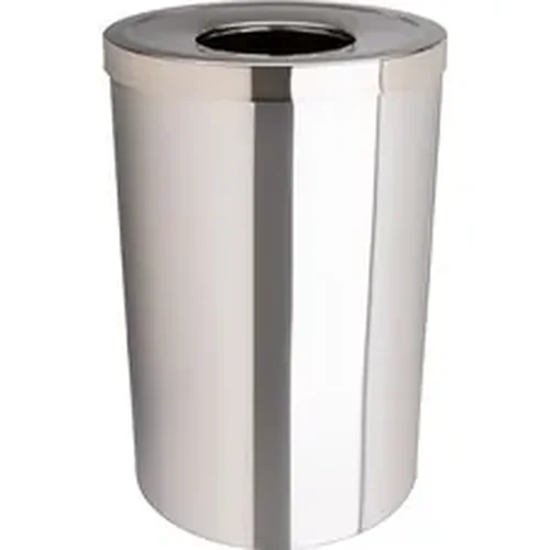 Trash receptacle is both attractive and durable with its heavy-duty, stainless steel body. Open-mouth design allows easy trash disposal while the smooth, cylindrical exterior blends well with your location's decor. Trash receptacle offers a 30-gallon capacity.