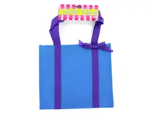 This colorful tote bag is perfect for little girls who love to carry their favorite dolls, crafting supplies, or any lightweight items. Available in two vibrant colors: a lovely blue adorned with a stylish purple bow, and a bright neon green accented with a fun hot pink bow. Each bag measures 11 7/8" x 10 1/8" x 4" and comes with a hanging card for easy display. Made from durable polypropylene, this tote bag combines style and functionality.