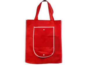 The Versatile Red Shopping Tote with Front Pocket is perfect for shopping trips, travel, and everyday errands. This stylish tote offers ample space for your belongings while being convenient to store. The attractive solid red design paired with white piping gives it a fresh look. Key features include a secure front pocket with snaps for small items and durable double carrying handles, making it easy to carry.