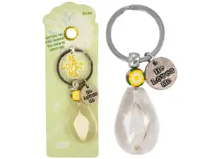 Measuring approximately 3.25 inches long, this keychain is perfect for keeping your keys organized or as a lovely gift for someone special. It comes conveniently packaged on a hanging panel, making it an ideal present.