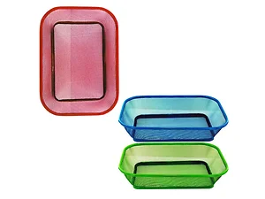 These vibrant mesh baskets come in assorted colors including green, red, and blue, making them perfect for a variety of uses. Use them for home decor, gifting, or serving delicious food and treats at your next gathering. Each basket measures 11" x 8" x 2 1/2" and adds a pop of color to any space.
