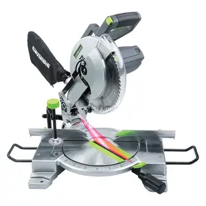 • 15-amp motor;• Makes precision miter cuts up to 45? left and right, with 9 position stops at commonly used angles;• Makes bevel cuts up to 45deg left of 2 in. x 4 in. nominal lumber;• Makes 90deg cuts on nominal lumber sizes up to 2 in. x 6 in.;• No-load speed: 4,600 RPM;• Blade size: 10 in.;• Arbor size: 5/8 in.;• Die-cast aluminum base for portability;• Spindle lock for quick blade changes;• Electric brake stops blade in seconds;• Max cutting capacity at 0deg x 90deg = H 3 in. x 4-3/4 in.; at 0deg x 45deg : H 1-3/8 in. x 4-3/4 in.;• Max cutting capacity at 45deg x 90deg = H 3 in. x 3-5/16 in.; at 45deg x 45deg : H 1-3/8 in. x 3-5/16 in.;• Weight: 24 lbs.;• Includes installed 60T carbide blade, hold-down clamp, dust bag, 2 extension wings, blade wrench, and 2 AAA batteries for laser;