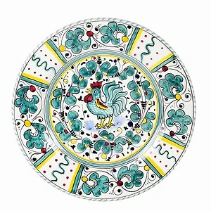 The Galletto (Rooster) pattern features a crowing rooster, a symbol of good wishes for blessings, prosperity, and well-being. Each plate is uniquely handcrafted, ensuring that every piece has its own distinct character.