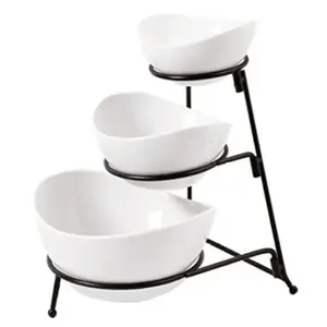 Gracious Dining 3Tier Server Serveware with a modernized look. This decorous Gracious Dining three tier bowl server set is composed of three fine ceramic dishes and a sturdy metal stand.