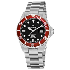Grovana 1571.2136 Men's 'Diver' Black Dial Red Bezel Automatic Watch Grovana 1571.2136 Men's 'Diver' Black Dial Red Bezel Automatic Watch features a stainless steel 42mm case, a black dial, and a scratch-resistant sapphire crystal. The 22mm stainless steel band is fitted with a fold-over clasp. The Grovana 1571.2136 watch is powered by Automatic movement. Grovana 1571.2136 watch has a water resistance of up to 100 feet/30 meters, suitable for short periods of recreational swimming. Features: Brand: Grovana Model number: 1571.2136 Case Shape: Round Dial window material type: Scratch-resistant Sapphire Display Type: Analog Clasp: Fold-Over Clasp with Safety Case Material: Stainless steel Case diameter: 42 millimeters Case Thickness: 13 millimeters Band Material: Stainless Steel Band length: 8 inches Band width: 22 millimeters Band Color: Silver-tone Dial Color: Black Bezel Material: Stainless Steel with a Red Top Ring Bezel Function: Uni-directional Movement: Automatic Water-resistant depth: 30 meters / 100 feet UPC: 7611751146072 Grovana 1571.2136 MSRP: $ 1,395