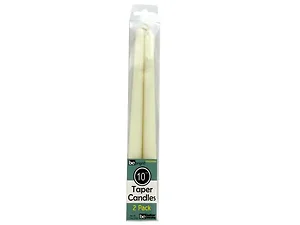 Enhance your dining experience with our elegant 10-inch unscented white taper candles. Designed to complement any table setting, these classic candles burn beautifully and add a touch of sophistication to your gatherings.