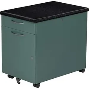 Personal storage unit offers convenient storage for the varied things you need to work. Lift the top to access the landing pad for your devices and a storage well for your backpack, purse, gym bag and more. A file drawer and concealed personal drawer can help with the incidental filing and storage. An additional wheel on the front drawer prevents tipping for safe use. A grommet is located in the top back of the cabinet to allow wires to pass through. With an optional side-bin (sold separately) for active documents, this storage unit offers space for all of your important papers.