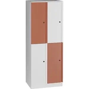 Quad locker provides secure storage for your jacket, shoes and personal items. The all-metal construction utilizes reinforced parts that are concealed for a smooth, refined appearance both inside and out. Its versatile design allows it to be configured in countless ways with additional lockers to accent a wall, divide a space or as a counter-height, worksurface support. Adjustable leveling glides ensure proper alignment and operation, and are accessible from inside the locker.