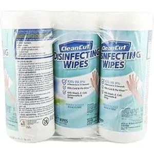 Clean Cut Disinfecting Wipes feature a dual-action formula that cleans up stubborn messes while it disinfects. These wet wipes have a textured surface that removes stuck-on dirt and locks away grease and grime for a virtually streak-free shine. They kill 99.9 percent of bacteria in 15 seconds, kill cold and flu viruses, and kill staph, E. coli, salmonella and strep. They are great for kitchens, bathrooms, offices and classrooms. Each convenient wipe neutralizes odors on contact.