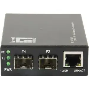 General InformationThe LevelOne GVT-2011 Gigabit Media Converter Switch provides 1 RJ45 and 2 SFP ports to support conversion between 10/100/1000Base-T and 1000Base-X networks. With the two SFP ports, the converter switch provides high reliability and flexibility to extend the media transmission distance up to 550m, 20km, or longer depending on the SFP fiber optical transceivers. It allows the two types of segment to connect easily, efficiently and inexpensively. The GVT-2011 works in high performance Store and Forward mechanism, and prevent packet loss with IEEE 802.3x Flow Control (Full-Duplex) and Back Pressure (Half-Duplex) functions. As the GVT-2011 Media Converter fully complies with IEEE 802.3 10Base-T, IEEE 802.3u 100Base-TX, IEEE 802.3ab 1000Base-T and IEEE 802.3z 1000Base-X, the Gigabit media converter installation is quite quick and easy by simply plug and play.Interfaces/PortsTotal Number of Ports: 1Network (RJ-45): YesNumber of Network (RJ-45) Ports: 1Media & PerformanceMedia Type Supported: Twisted PairMedia Type Supported: Optical FiberI/O ExpansionsNumber of Total Expansion Slots: 2Expansion Slot Type: SFPNumber of SFP Slots: 2Network & CommunicationEthernet Technology: Gigabit EthernetNetwork Technology: 10/100/1000Base-TXNetwork Technology: 1000Base-SX/LXPower DescriptionPower Source: AC AdapterPhysical CharacteristicsForm Factor: DesktopForm Factor: Wall MountableHeight: 1"Width: 2.8"Depth: 3.7"Weight (Approximate): 10.58 ozMiscellaneousPackage Contents: RJ45 to SFP Gigabit Media Converter Switch, 2 x SFP, 1 x RJ45 Power Adapter Quick Installation Guide Country of Origin: China