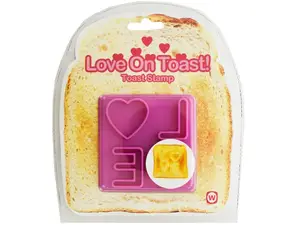 Make every breakfast special with the Toast Your Love Stamp! This adorable kitchen tool features a pink plastic stamp with the word love creatively designed, showcasing a heart in place of the O. Perfect for adding a sweet touch to your toast, just press it firmly into the bread before toasting for a delightful surprise.