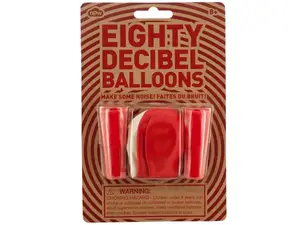 Get ready to make some noise at your next celebration with the Eighty Decibel Party Noisemaker Balloon Set! This exciting set includes two vibrant red noisemakers and four eye-catching red and white balloons. Simply attach a balloon to a noisemaker, inflate it, and let the fun begin!