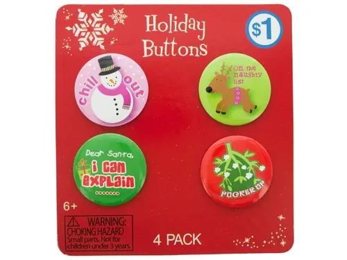 Add some fun to your holiday spirit with our Festive Holiday Button Pins Set! This engaging 4-piece set features amusing pin buttons showcasing delightful designs: