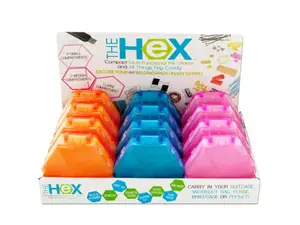 Compact and portable, you can take it along in your suitcase, gym bag, purse, briefcase, or even your pocket! The caddy measures approximately 3.5" x 1.5" x 3.375" and is available in three assorted colors. Comes loose with a countertop display that includes 12 pieces.