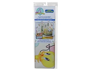 Transform your baby's room with these vibrant, removable Jumbo Wall Decals featuring beloved Baby Looney Tunes characters. This set makes decorating easy and enjoyable—no adhesives required! Simply peel the pre-cut appliques and apply them to smooth, clean surfaces.